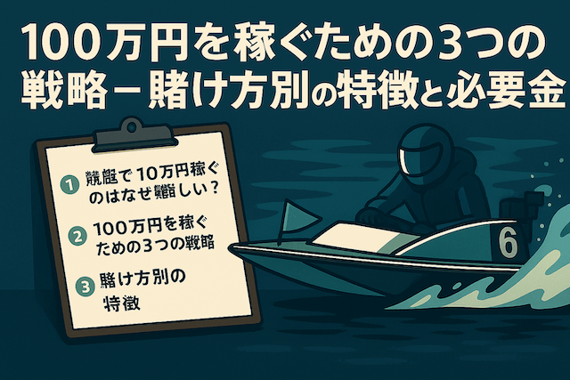 競艇で100万円を稼ぐ方法と現実について、データや具体例を交えて解説してきました。