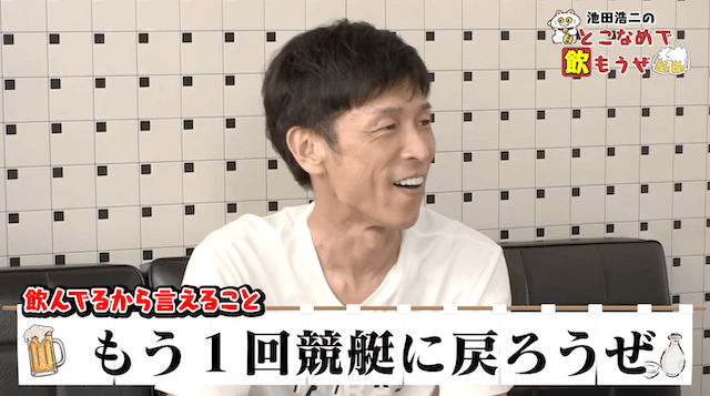 先ほど紹介した、とこなめボートレース公式YouTubeチャンネルの番組『池田浩二のとこなめで飲もうぜ』。