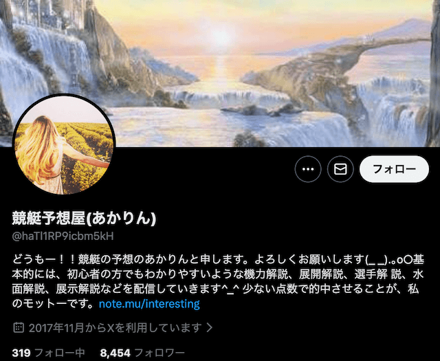 競艇予想屋あかりんは、安定感を重視した予想スタイルが特徴のアカウント。