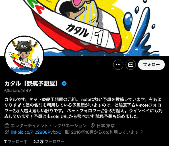 カタルは、展開予想に強みを持つ競艇予想屋としてXで注目されている存在だ。