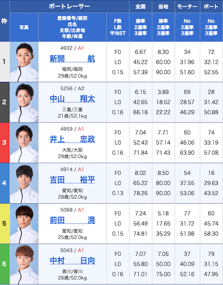 実力者揃いの選手が多い上に3・4コースには、同じA1級の選手が配置されています。