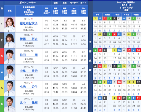 さらに、5号艇にもA1級小池公生選手が配置されています。