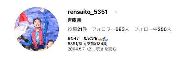 齊藤廉のインスタのフォロワーは、683人です。