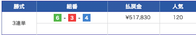 さらには、このレースの配当は、驚異の3連単「51万7830円」です。