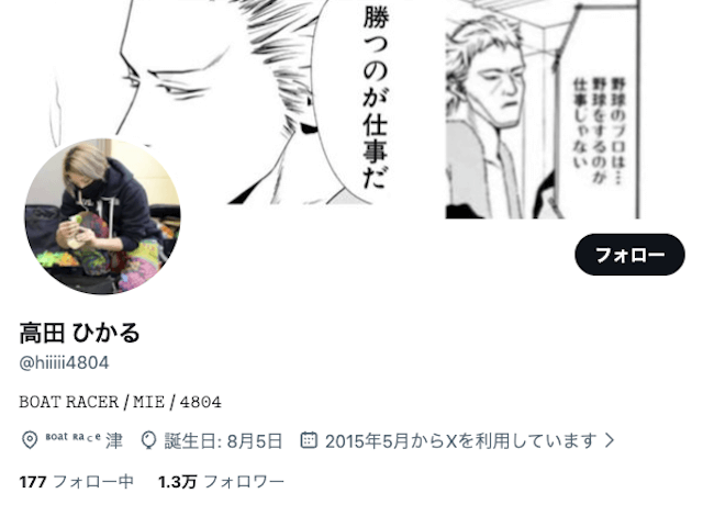 多くの競艇選手がレースの宣伝用にSNSを始めている事が多く、高田ひかるもプライベート用というよりは競艇関連の情報発信用にXを始めたのかもしれません。
