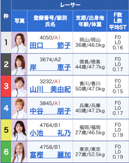 さらに、A1級選手が3・4号艇に配置されているので、富樫麗加にとっては難しいレースでしょう。