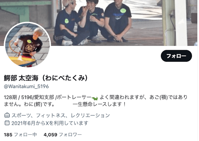 そこで、鰐部太空海のSNSを調べたところ、「X」 を利用していることがわかりました。
