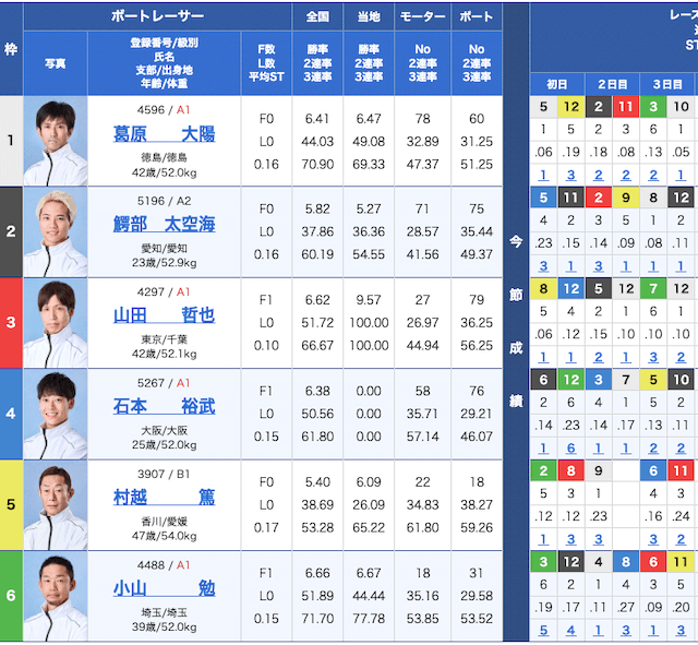 特に、3コースの山田選手はF持ちではあるものの、鳴門競艇場とは相性は抜群。