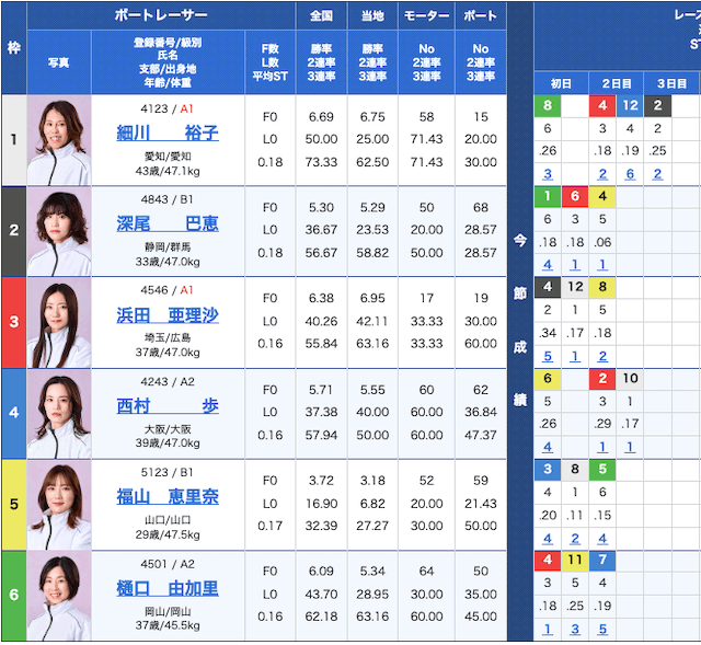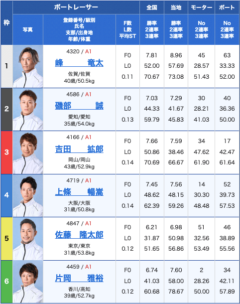 また、「どの選手を軸にするべきか?」「その会場での戦績はどうか?」を知りたい方は、下記の表を参考にしてみてください!