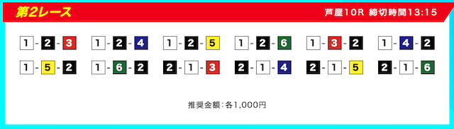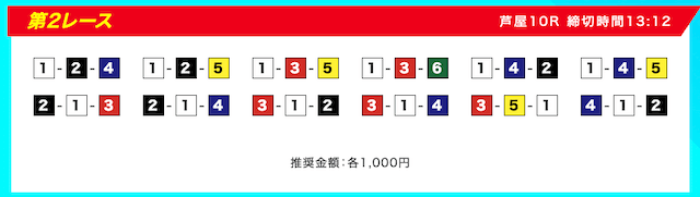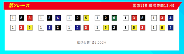 本線としては①-②-③④⑤だと思うし、他の買い目でも不可解な点はないためそのまま購入していく。