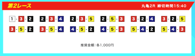 ①上野と③定松を軸に相手は②④⑤を選択した買い目。