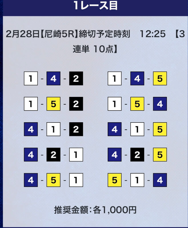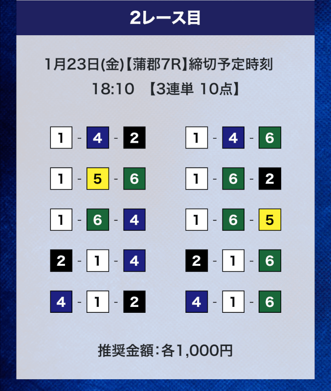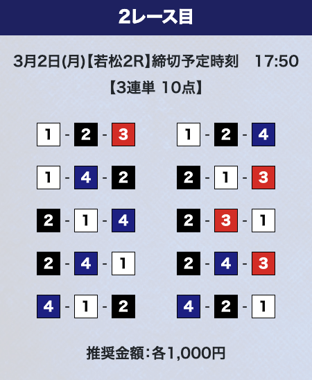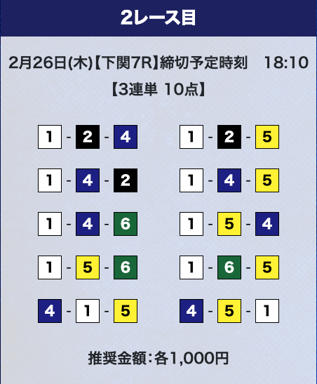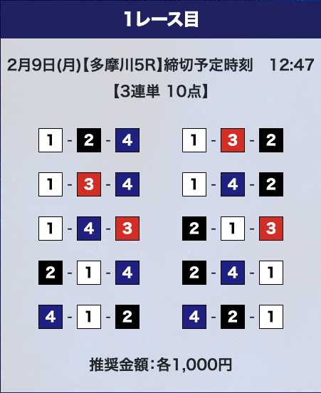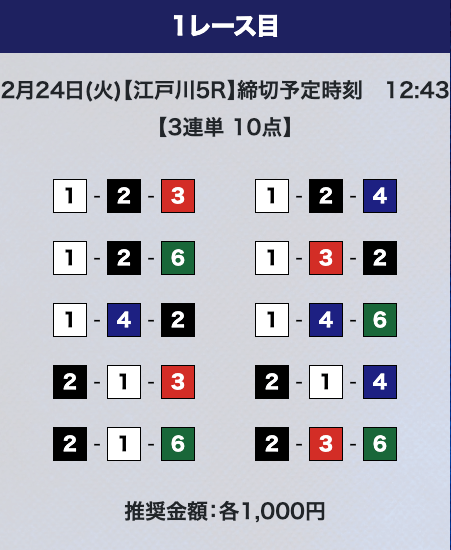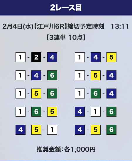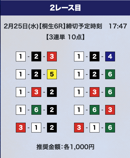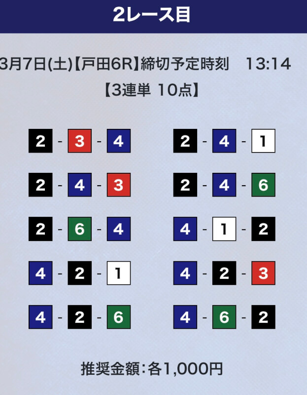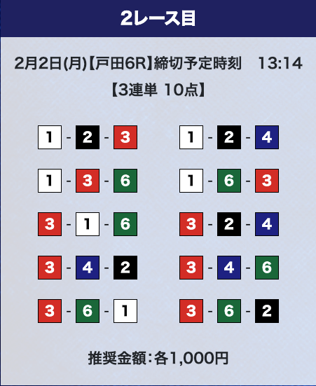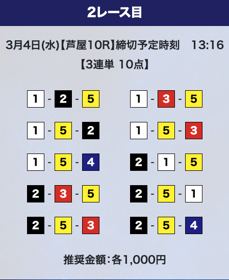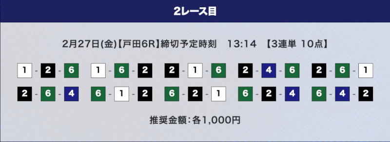 しかし、驚くのはまだ早い。プライムプランは2レースの予想提供なので、もう1レース勝負することができる。