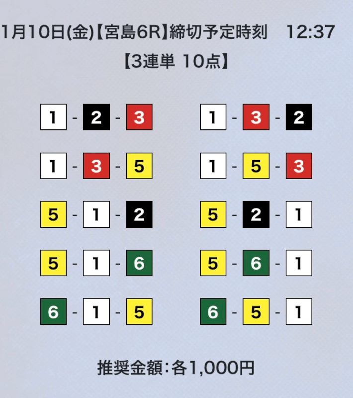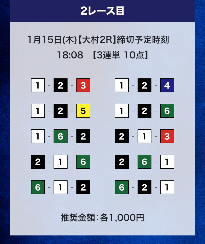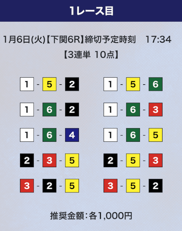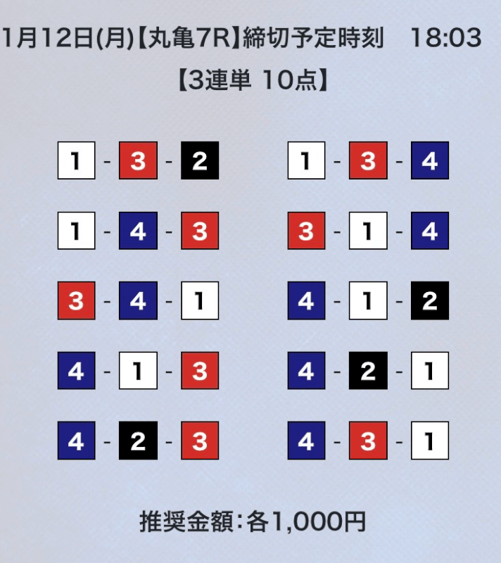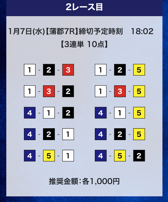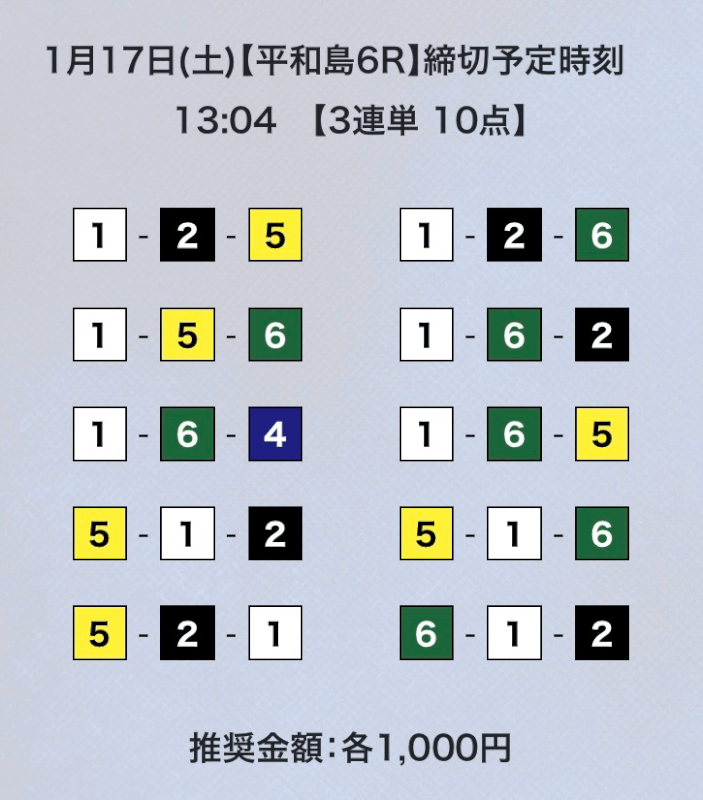①号艇を軸にしている点は変わらないが、相手は多少異なる。