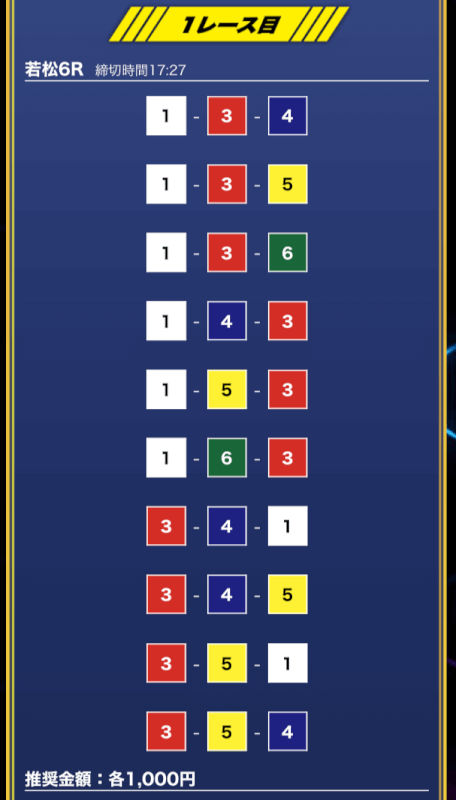 1レース目がハズレてしまったら2レース目は取り返すための勝負になってしまうため、まずは当ててほしいところ・・・