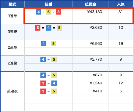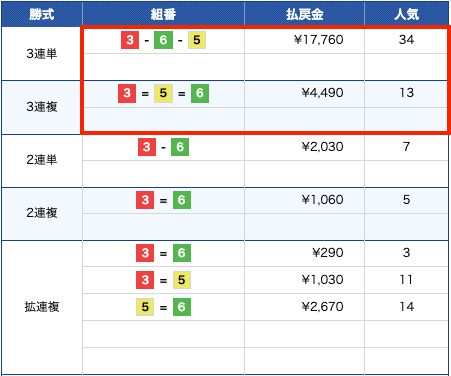 しかし、3連複にすることによって最低でもトリガミで不的中をなくすリスクヘッジをしていると考えれば理に適う。