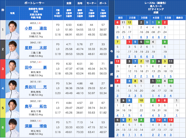 他で言うと④海野は初日6コースから5着も、まだ調整には手こずっている様子。