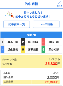 結果は、1レースで3万円ほどの利益を獲得することができた。