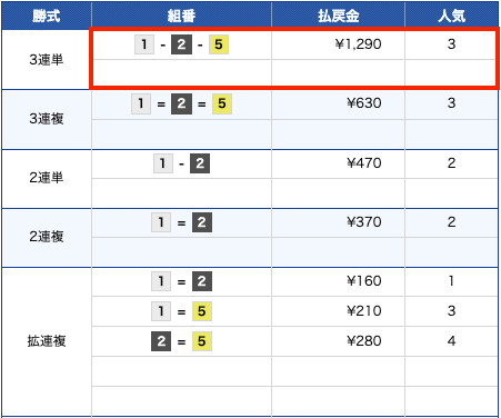 ①小野が飛んだり、B級2名で決着すれば配当も望めるかもしれないが、順当決着だった場合は平気でトリガミになる計算。