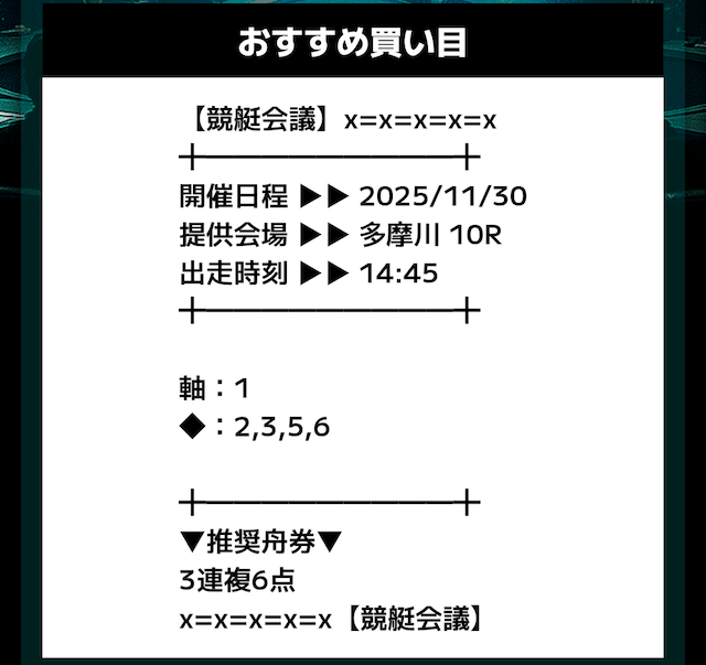 私が競艇会議の無料予想に初参加したのは2025年11月24日の多摩川6R。