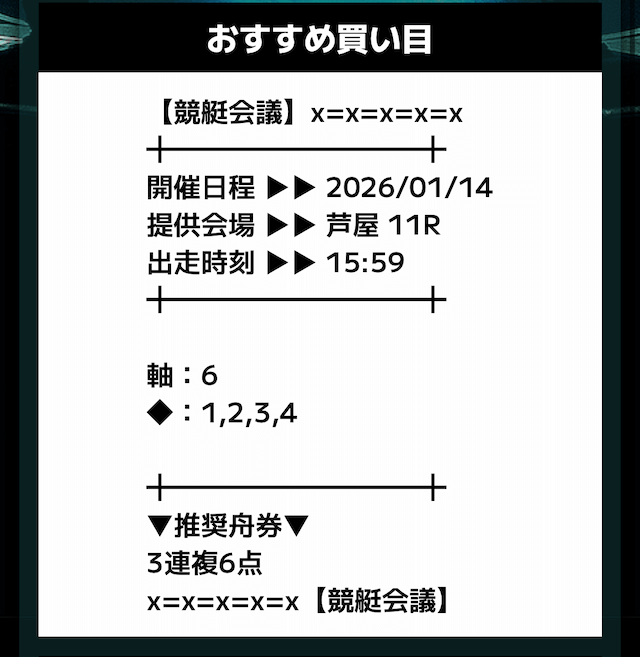 競艇会議は、これからもリピート確定。また、頼む。