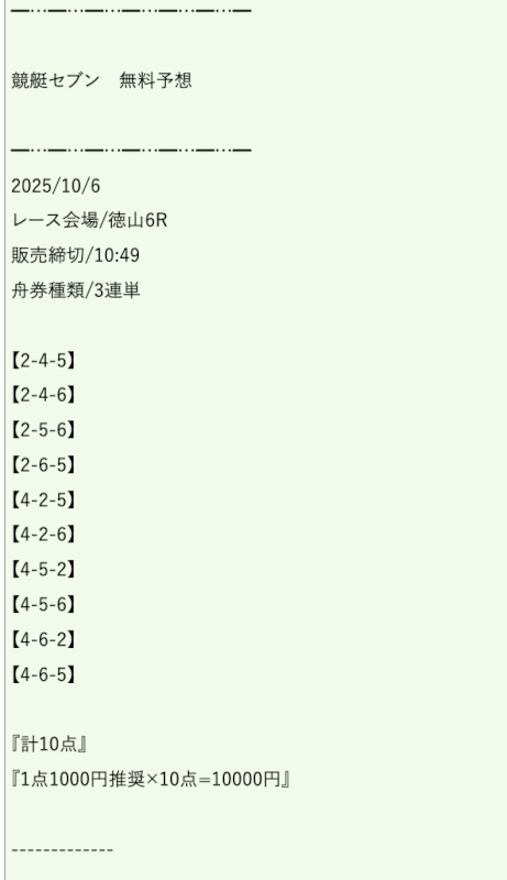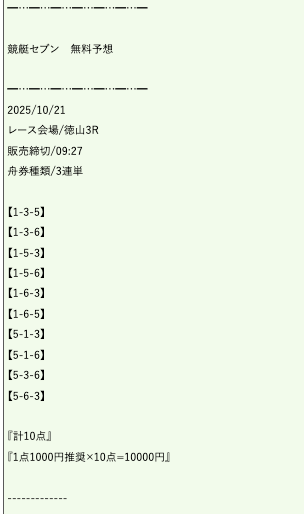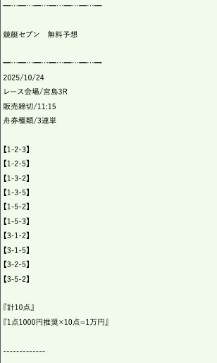 ただ、3着に6号艇を買い目に含め、5号艇を完全に切っている点が異なる。