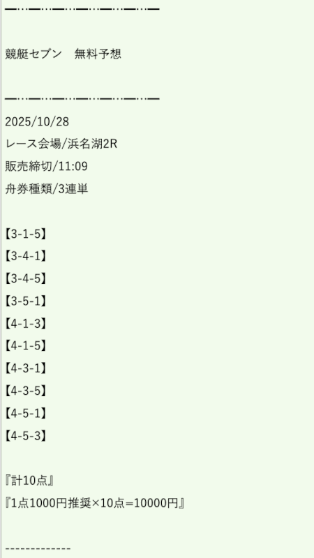 私が競艇セブンの無料予想に初参加したのは2025年8月31日の浜名湖5R。