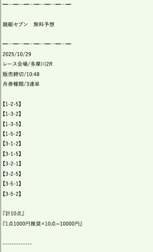 キャブレターの交換を考えてか?とも思うかもしれないが、競艇セブンの予想公開は展示よりも前なため、直前情報は考慮されていない。
