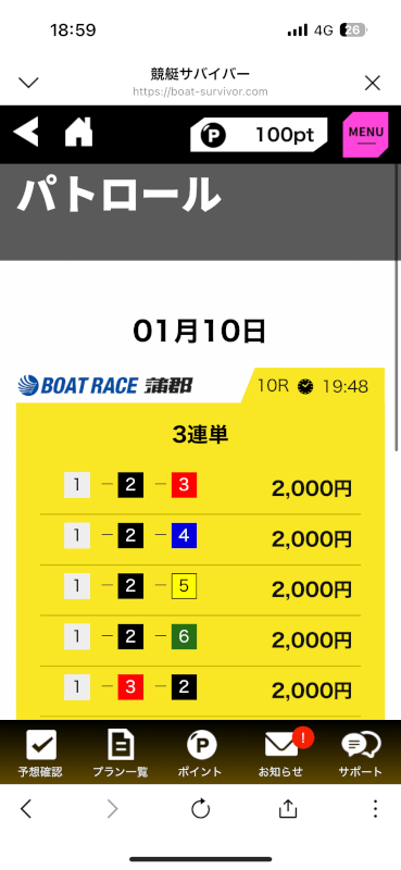 無料予想では結果を残してくれた競艇サバイバーですが、有料予想はどれだけの精度を持っているのか。