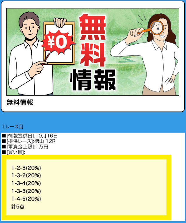 | 特徴① | 365日サイト内にて無料予想をはじめとした予想を公開 |