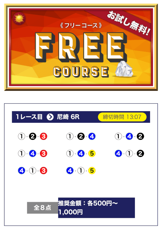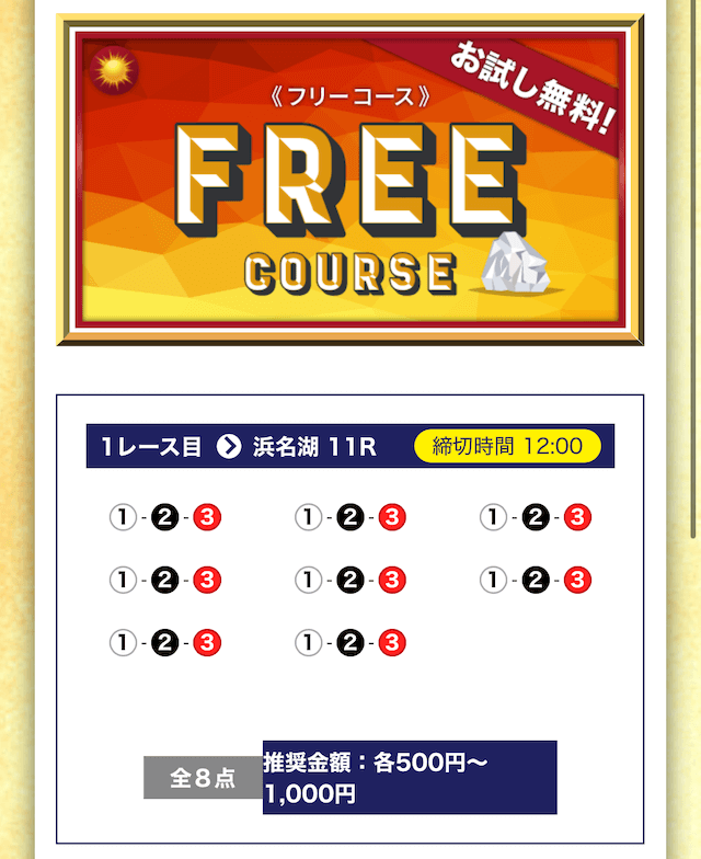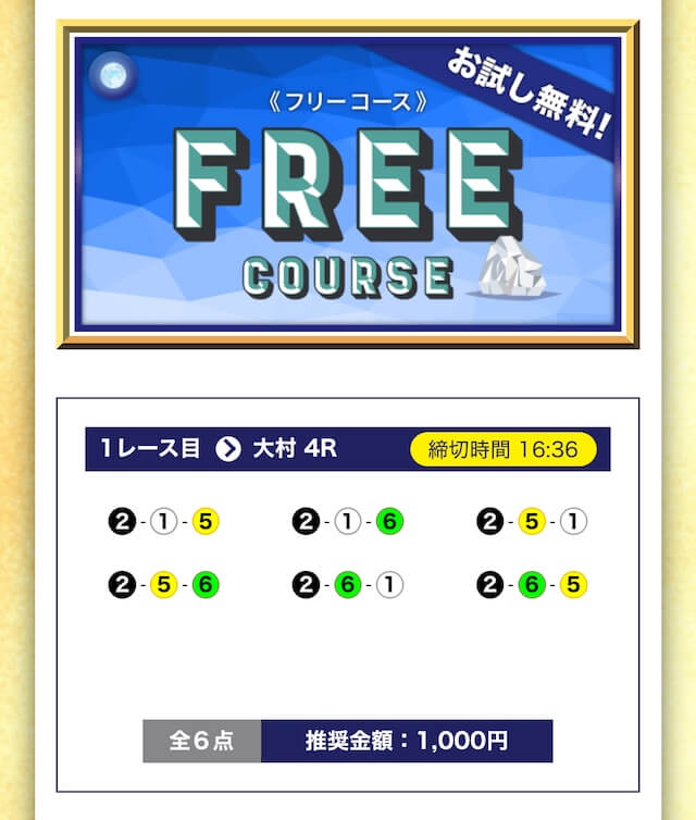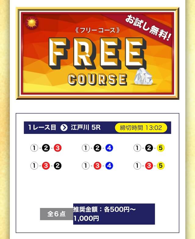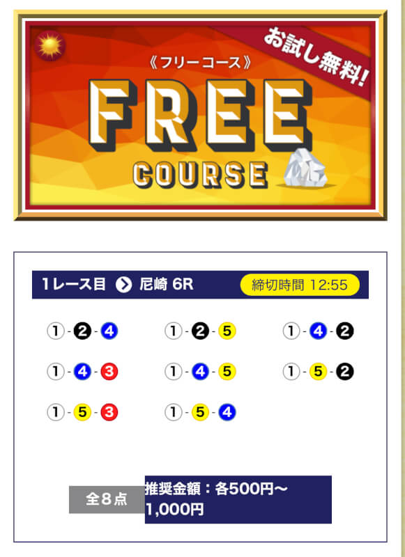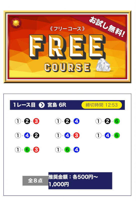 A.無料予想の舟券代は1レースあたり6,000円〜10,000円。購入点数は6〜10点となります。