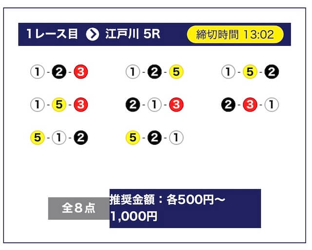 2025/10/02 江戸川5R 3連単 8.0倍 8,000円