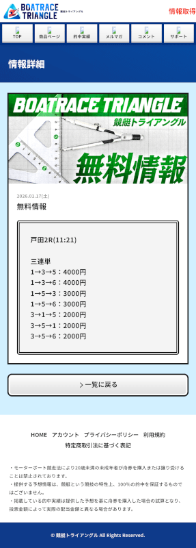 競艇トライアングルの無料予想に初参加(予想参加1回目)