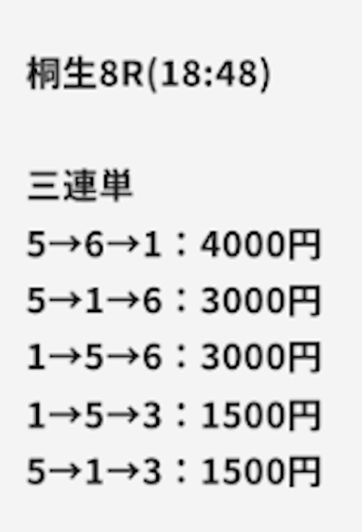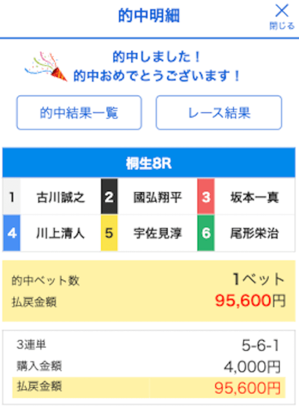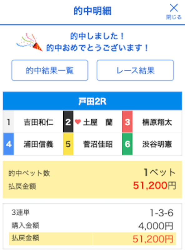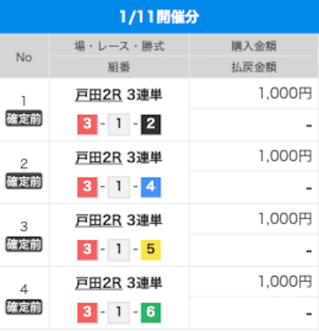 2レース目は、1レース目ほど払い戻しを獲得することはできなかったが、単発レースでこれだけ当てることができるのであれば何も言うことはないだろう。