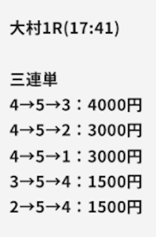 ①を含めた買い目を3着にしかいれていないのは、何か理由があるのだろうか。
