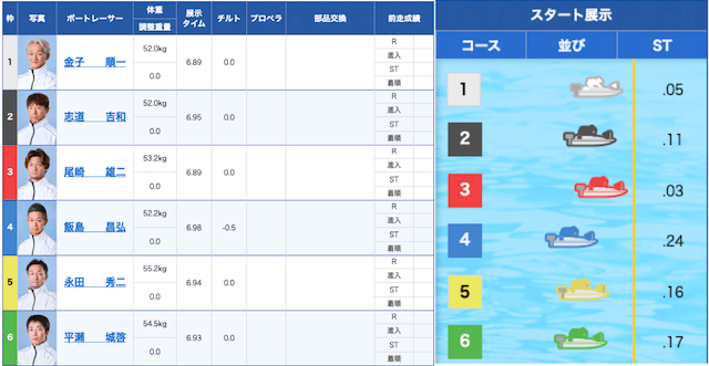それに加えて、スタート展示を見てみると ③楠原が好スタートを切っていることがわかる。