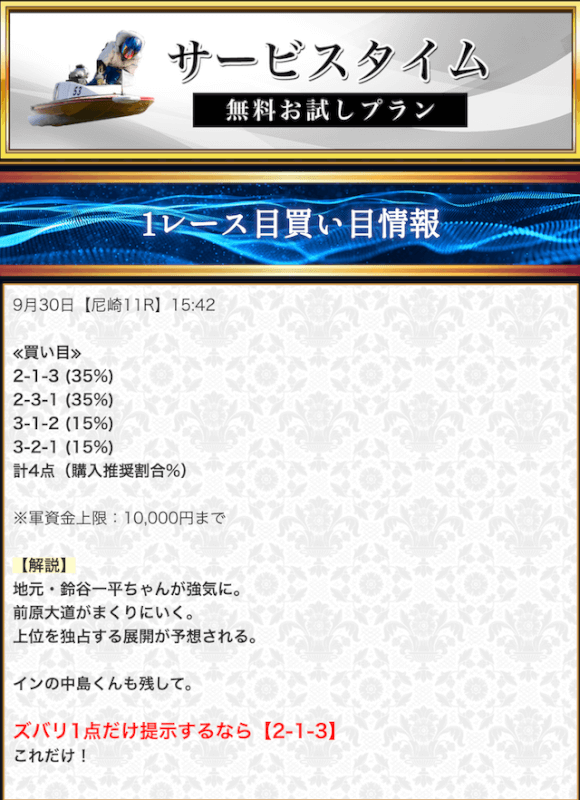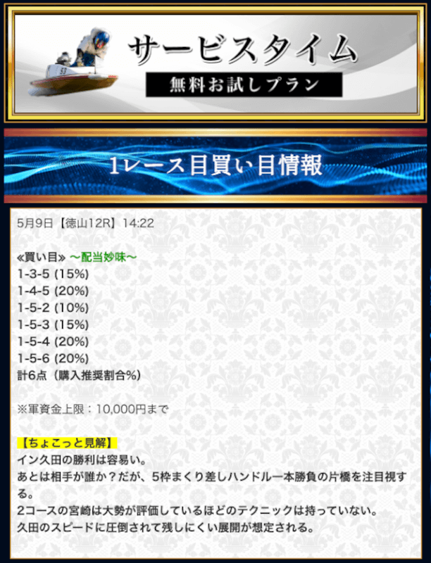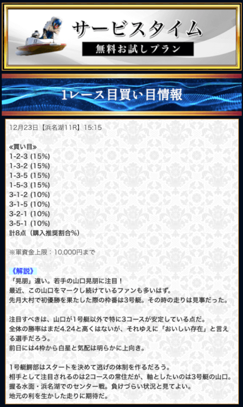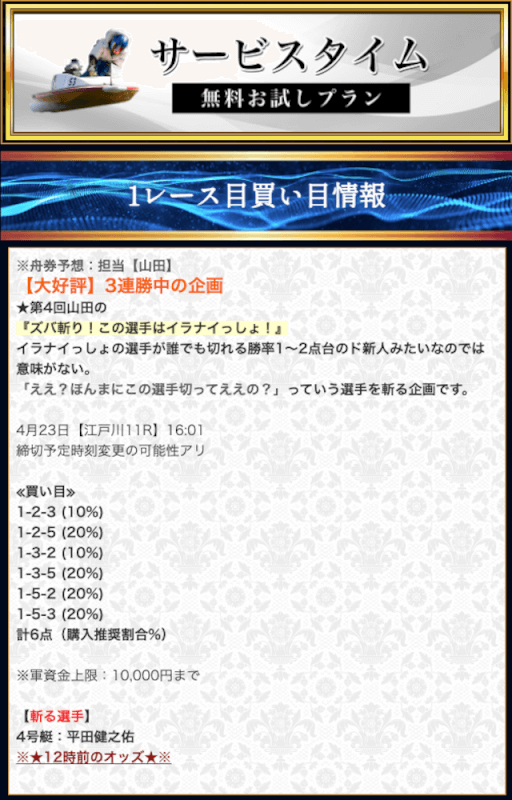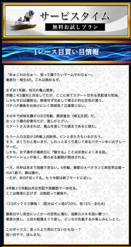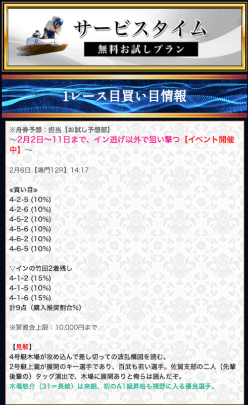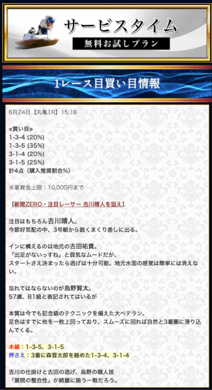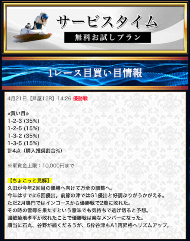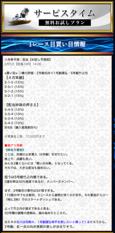 - 競艇セントラルの無料予想について