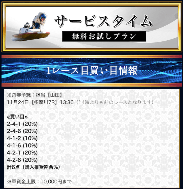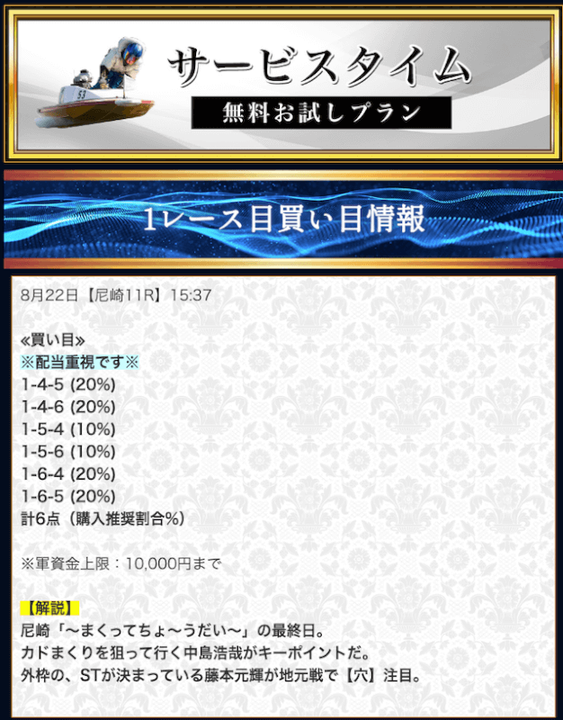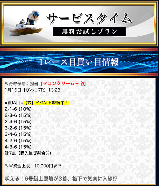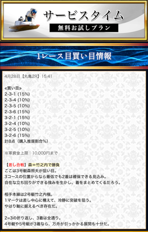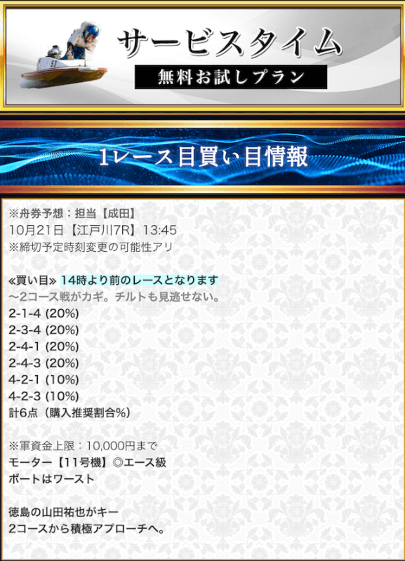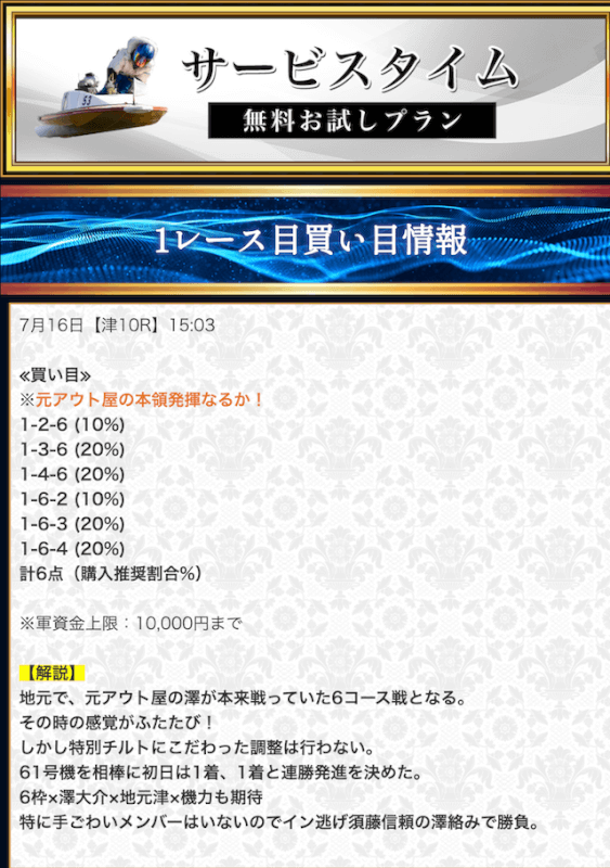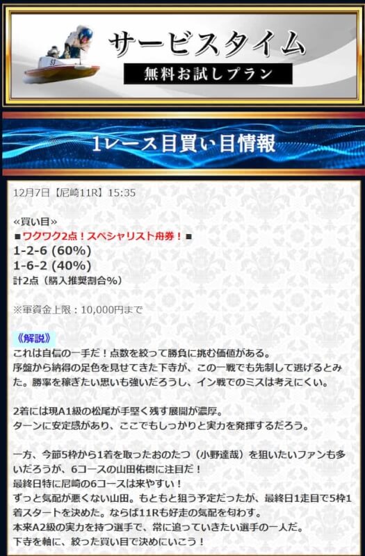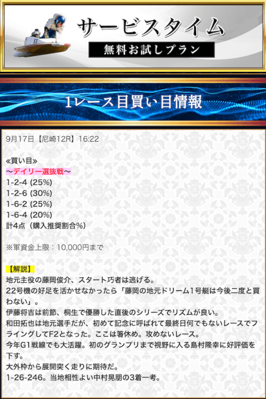 - 競艇セントラルの無料予想について