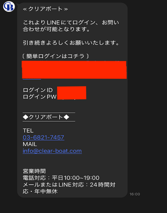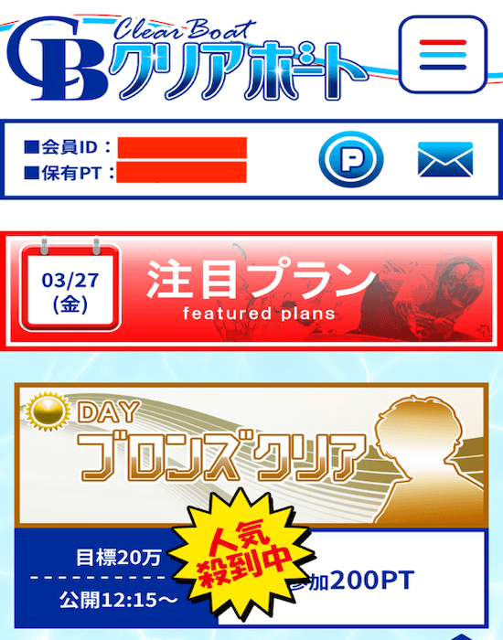 クリアボートの登録を済ませて、会員ページへとログイン。