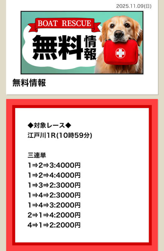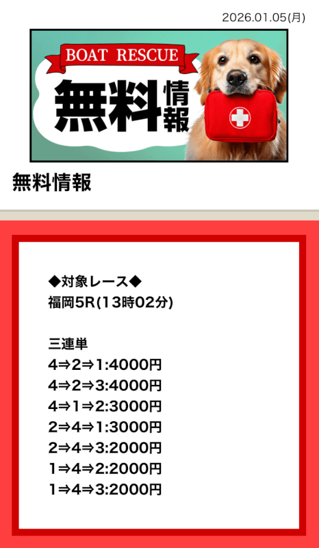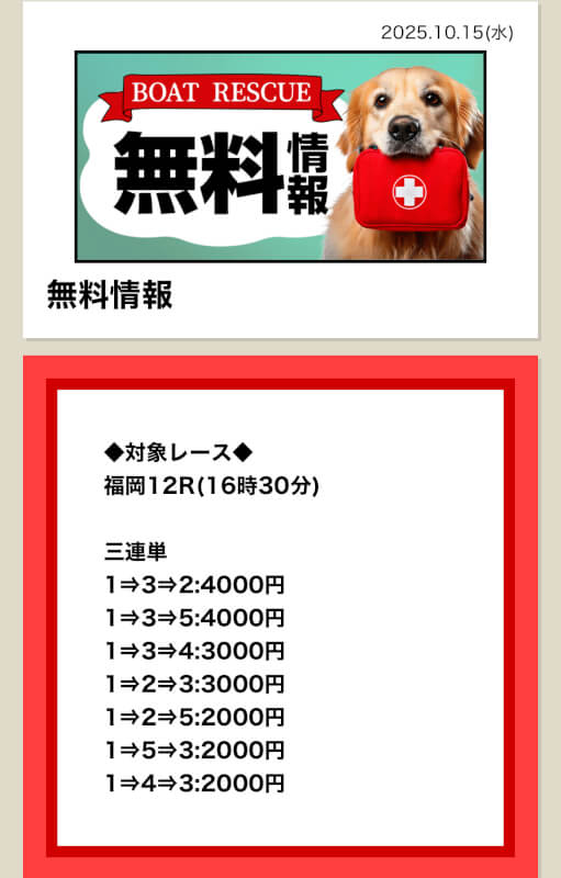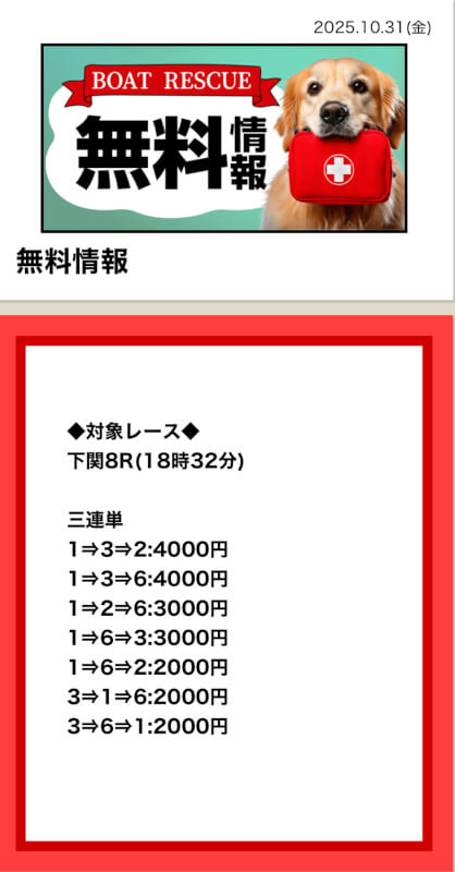 実際に提供された無料予想に参加してボートレスキューが利用に値するサイトなのかどうかを検証していく。