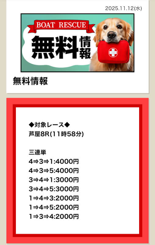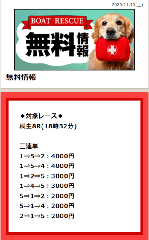 的中実績を見ても、毎日のように出てるしボートレスキューの予想は本物。ここまで、予想精度が高いサイトはなかったから助かりました。