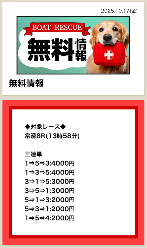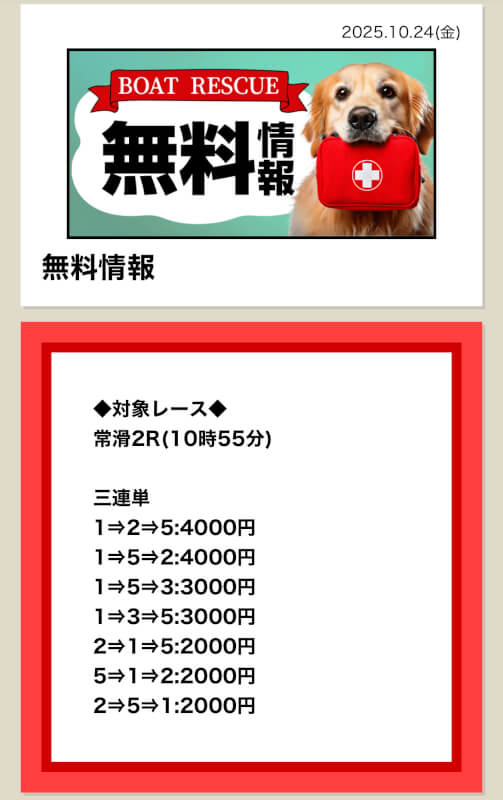 私がボートレスキューの無料予想に初参加したのは2025年7月10日の児島7R。