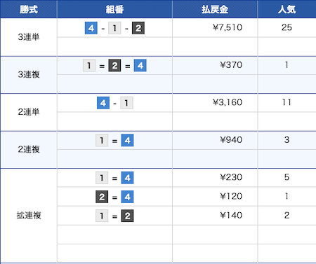 これらの見解から、エースモーターズ管理人が導き出した買い目は以下。