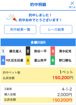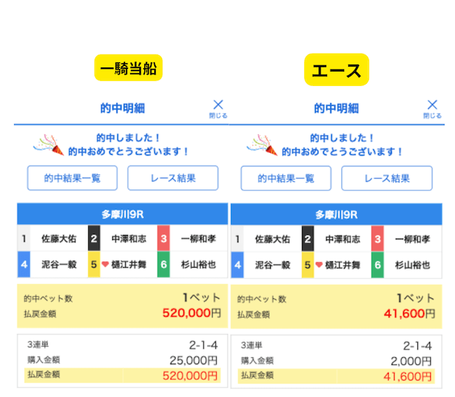 しかし、一騎当船は2レースとも的中させ52万円の払い戻しを獲得!