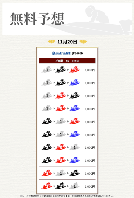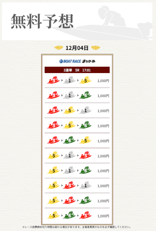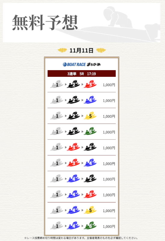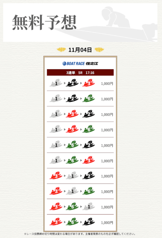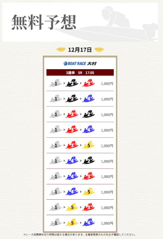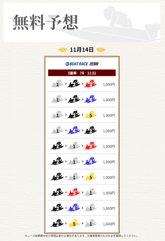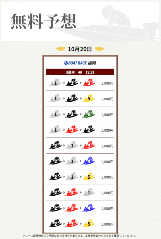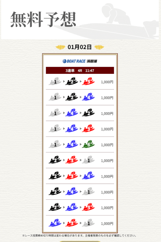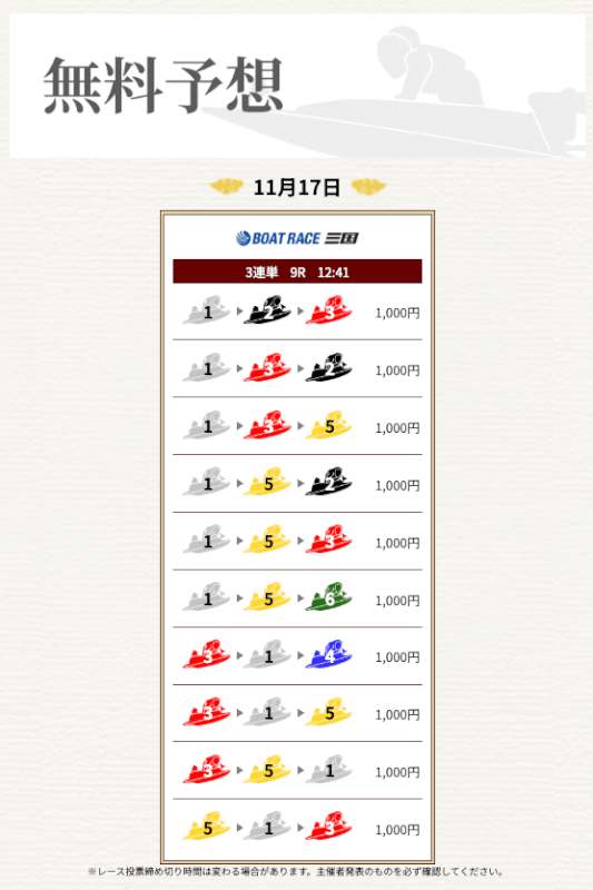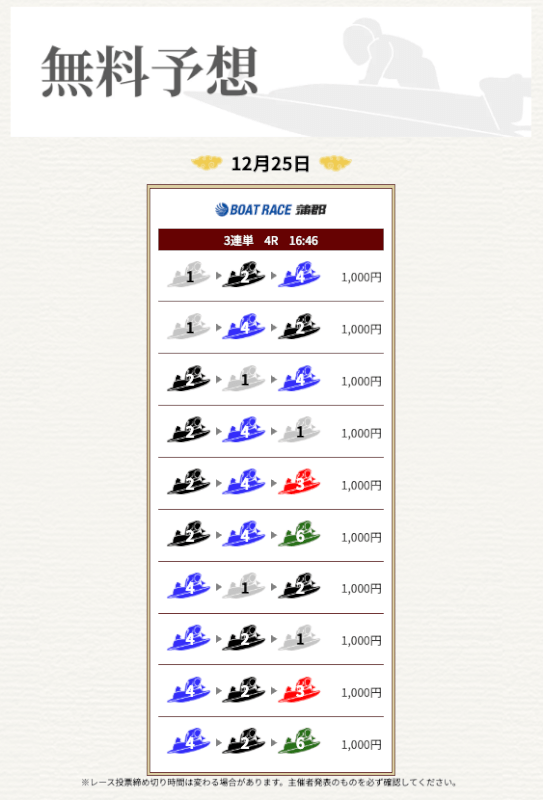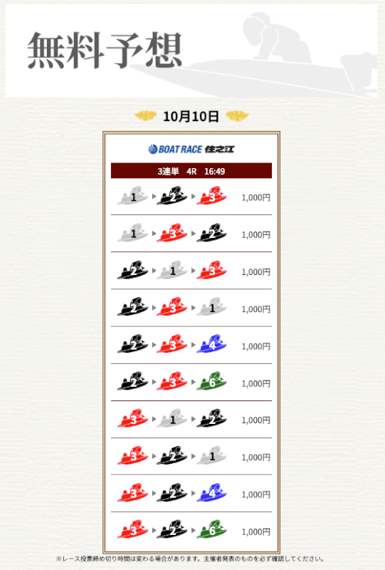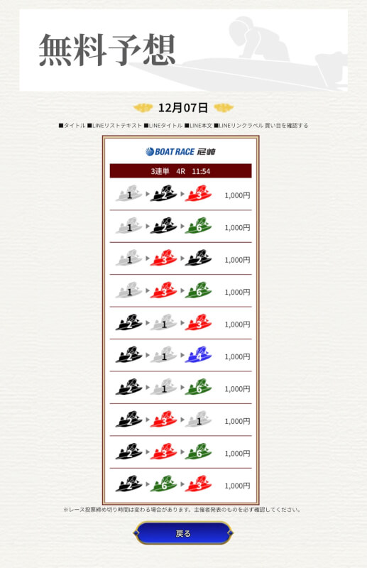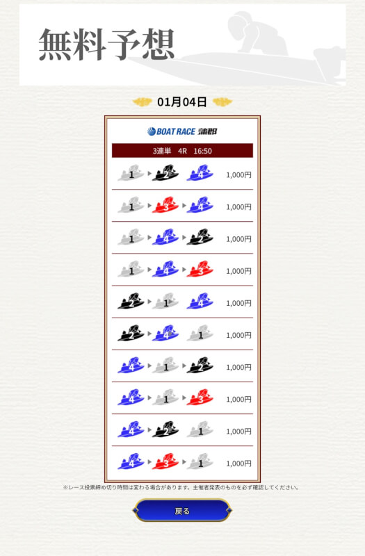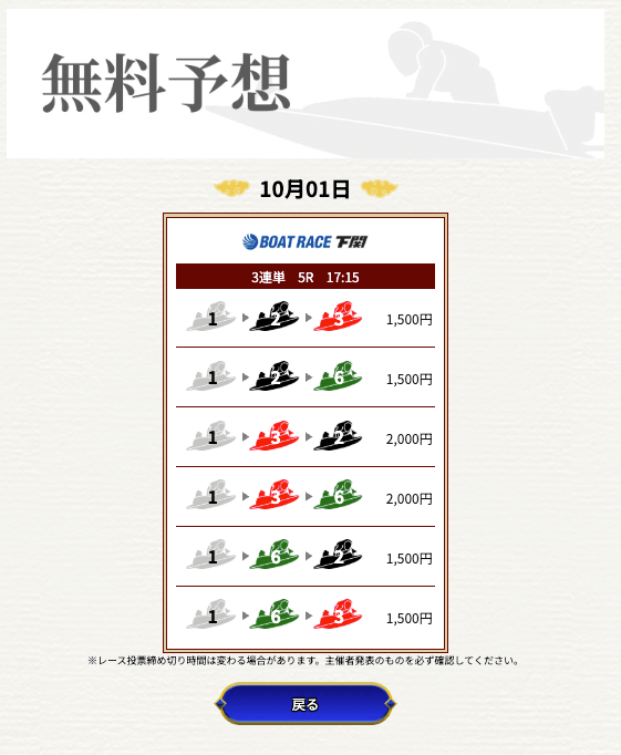 実際に提供された無料予想に参加して一騎当船が利用に値するサイトなのかどうかを検証していく。