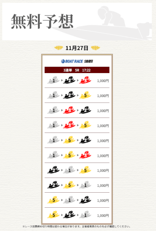 一騎当船の無料予想に初参加(予想参加1回目)