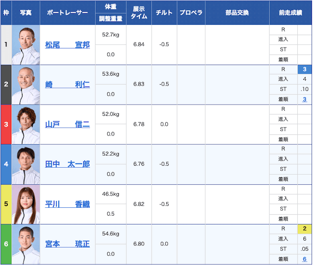 強いてあげるとすれば、③山戸がチルトを上げている点と④田中の展示トップタイムだ。