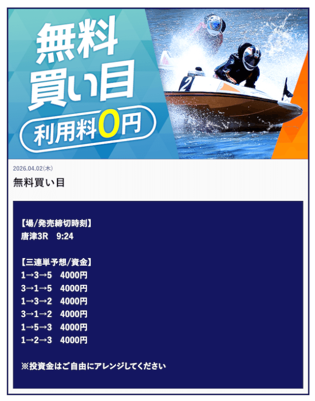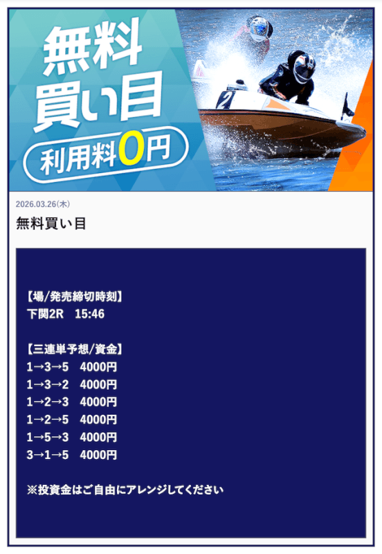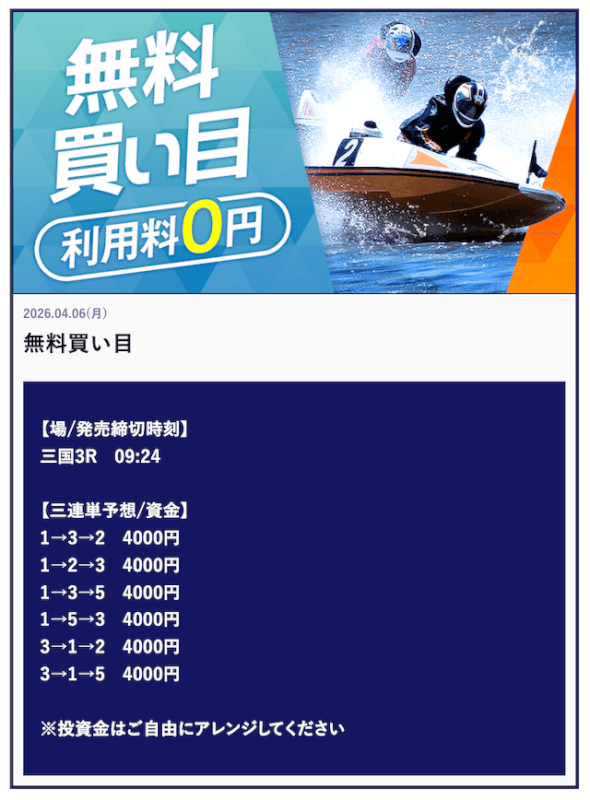 ボートキングの無料予想は、いわゆる”お試しコンテンツ”という位置付けではあるが、その設計を見るとサイトの本質がはっきりと表れている。