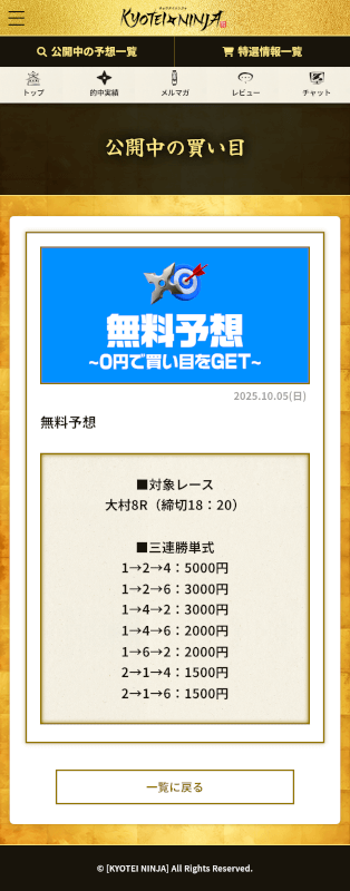 キョウテイニンジャの無料・有料予想を徹底検証!エースモーターズと勝負した結果を大公開!