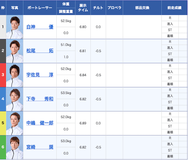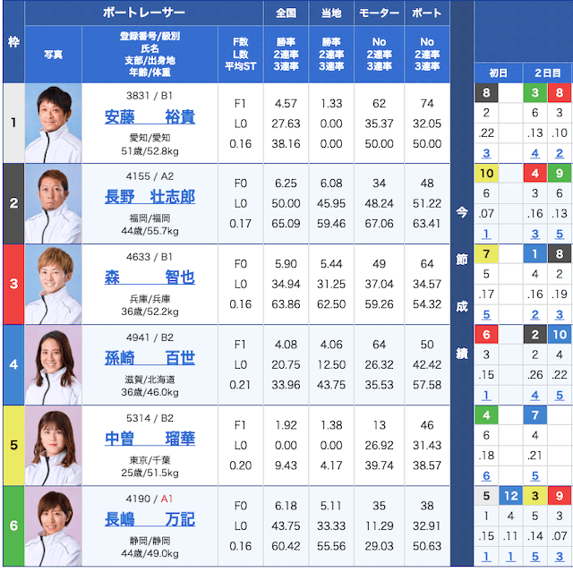 そこで、今回の出走表を見てみると、1・2・3号艇に男性レーサー、4・5・6号艇に女性レーサーが配置されているレース。