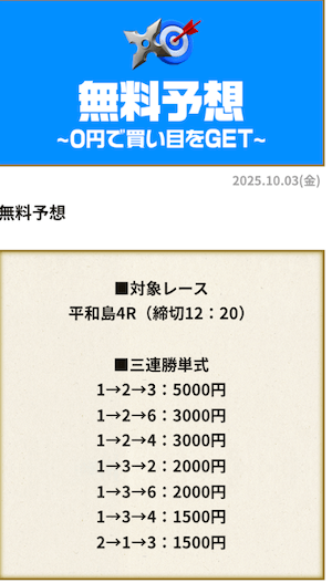 私が競艇ニンジャの無料予想に初参加したのは2025年10月4日の平和島4R。